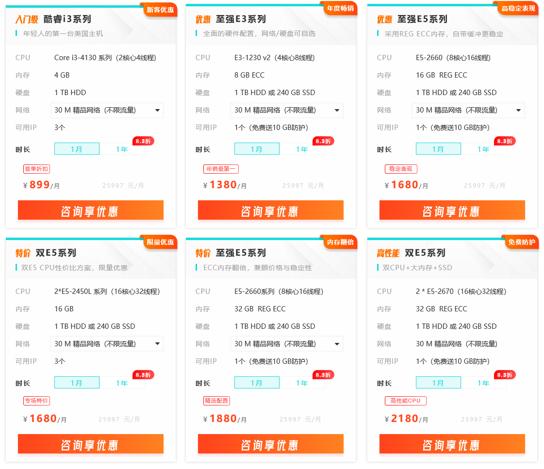 与香港的优化带宽相同,是最适合从大陆访问的线路,包括CN2/CT/CU/CMI/PCCW/COGENT线路,同时覆盖了大陆、美洲及国际线路。优化带宽适用于美国独服(标配30M可升级)、美国站群(标配30M可升级)、美国母机服务器(标配30M可升级)。